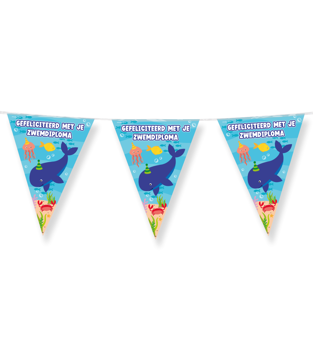Een feestje ter ere van het behalen van een zwemdiploma kan niet zonder vlaggetjes en als je deze party flags foil zwemdiploma koopt dan haal je direct een vlaggenlijn met een uniek thema in huis! De vlaggetjes zijn gemaakt van folie en de vlaggenlijn is 10 meter lang.